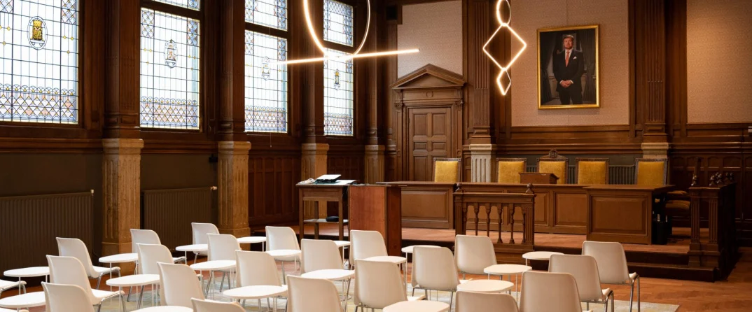 Met ingang van 1 januari 2018 heeft kantoor haar intrek genomen in het voormalig Paleis van Justitie. Het paleis van de regio en ons Paleis met een hoofdletter. Geschiedenis heeft zich herhaald. Ook nu heeft kantoor zich weten te onderscheiden middels stijl van huisvesting en ook nu waren er kantoorgenoten met een vooruitziende blik, die een (langdurige) toekomst in dit pand zagen. Het voormalig paleis verkeerde in een niet al te moderne staat, zeker nu het pand ruim twintig jaar leeg had gestaan. Verhuizen na jarenlang in een moderne pand te hebben gezeten naar aan pand dat antikraak uitstraalde: daar was lef voor nodig. Maar wij zijn Banning! Eerst werd lef getoond met de complete rebranding van de huisstijl van ons merk. Afbeeldingen van advocaten die zich in allerlei bochten en posities buigen en de overgang van onze vertrouwde rode kleur naar mintgroen. BANNING N.V. werd Banning Advocaten. En dat lef werd opnieuw getoond tijdens een complete renovatie van dit pand. Met een groot resultaat: ons Paleis als Clubhuis!